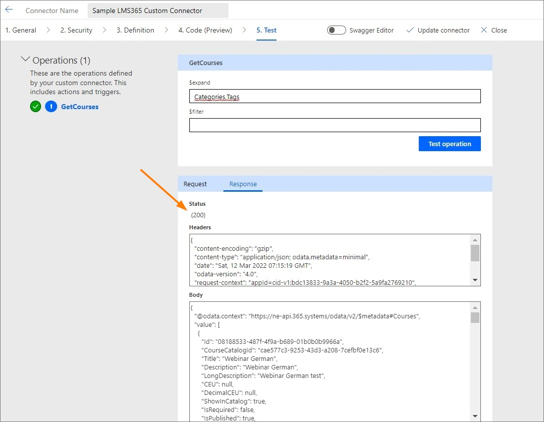 Also, it may be helpful if you want to use HttpRequest and HttpRequest_v2 actions of the default LMS365 connector in Power Apps. As those actions can be used without limitations only in Power Automate, creating a custom connector can serve as a workaround for such a case.
