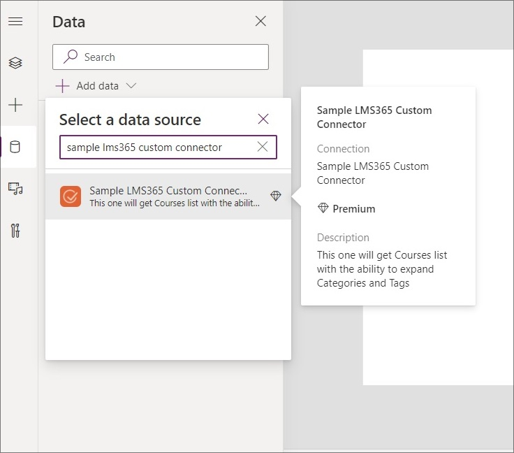 The next step is to create a simple app that will use the data obtained with the help of our custom connector. To do this follow the steps below: