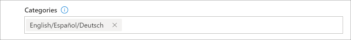 Create multilingual categories by entering the category name in multiple languages, with each language variant separated by a slash. This enables learners to filter by category to quickly identify courses that are available in multiple languages.