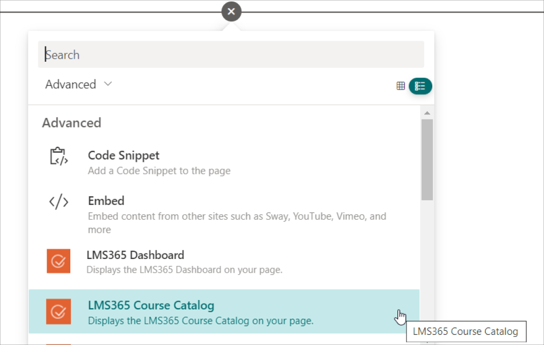3. Select the LMS365 Course Catalog web part.