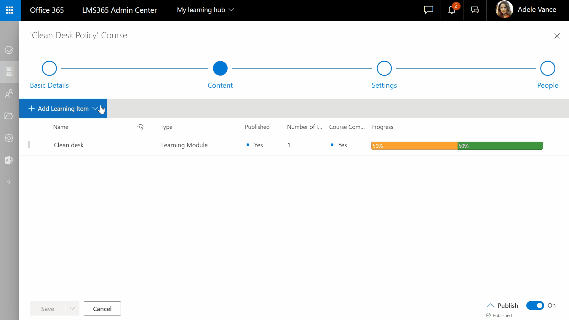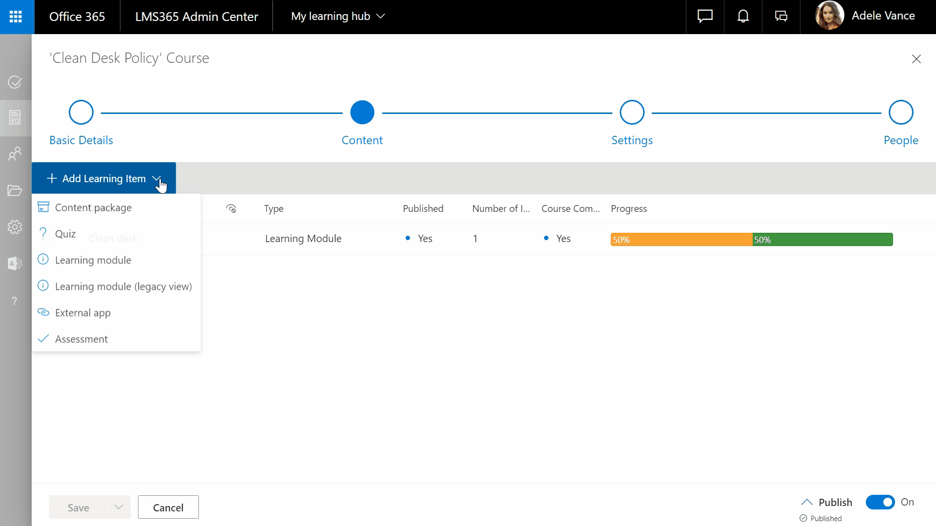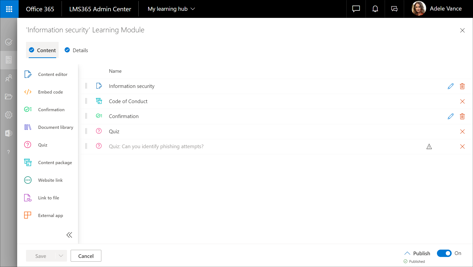 From here, you can smoothly add the relevant learning content before you move on to provide the learning module with a name and description.