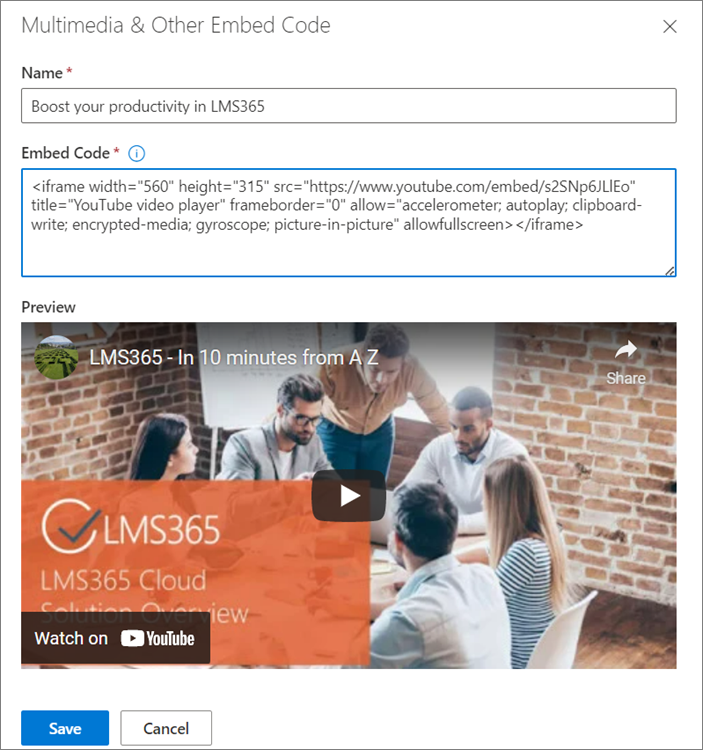 A preview window will allow you to preview the result of the code or multimedia you have inserted.