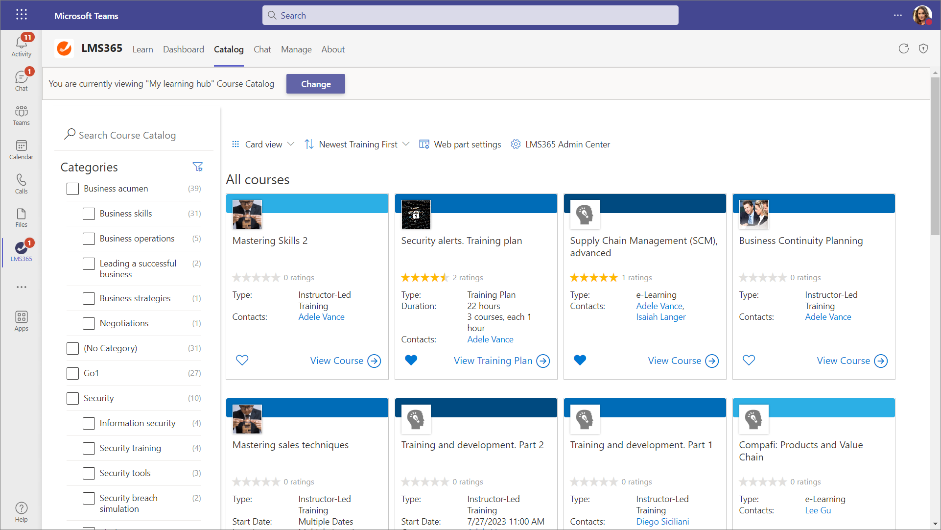 Learn365 courses available in Microsoft Viva Learning