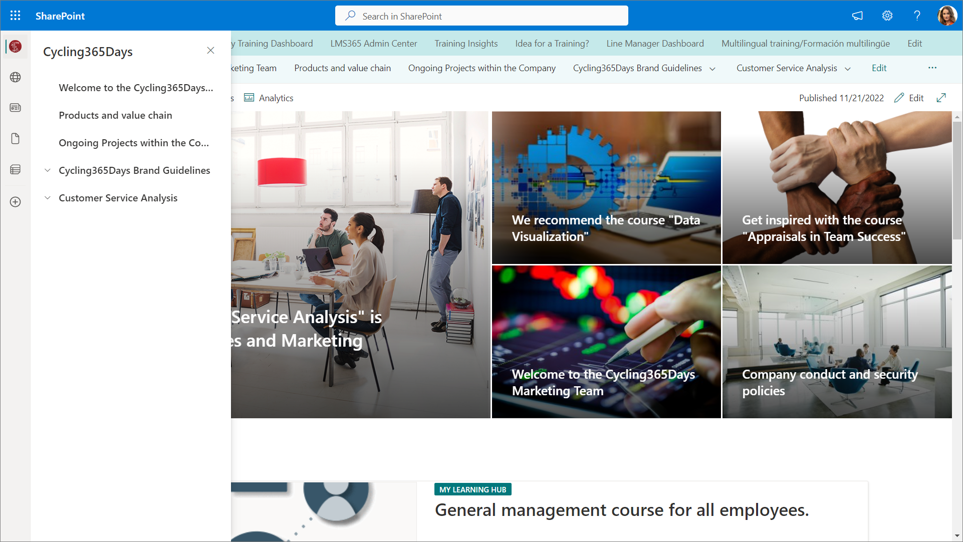 SharePoint Home page in Microsoft SharePoint web pages