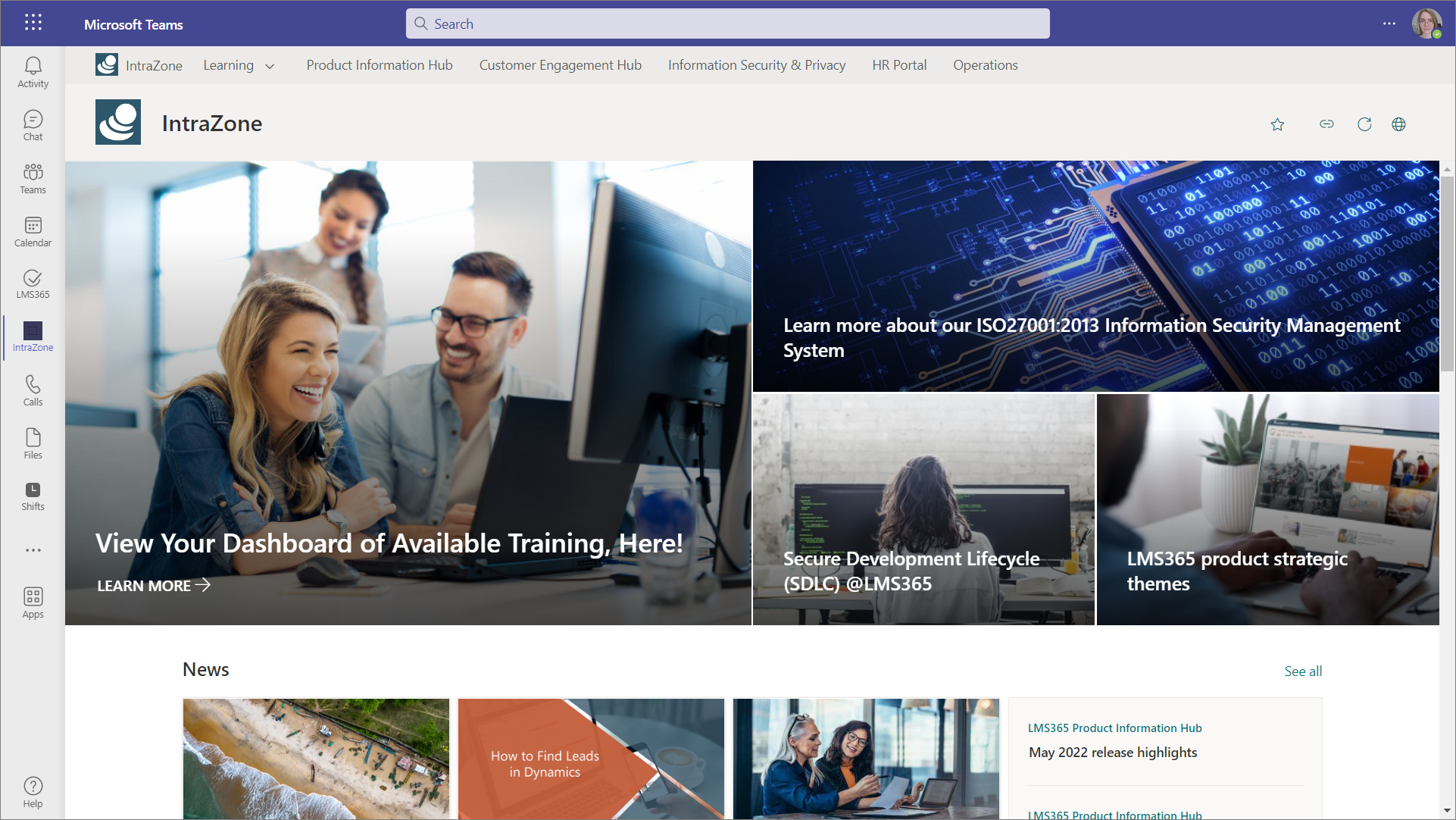 SharePoint Home page in Microsoft Teams