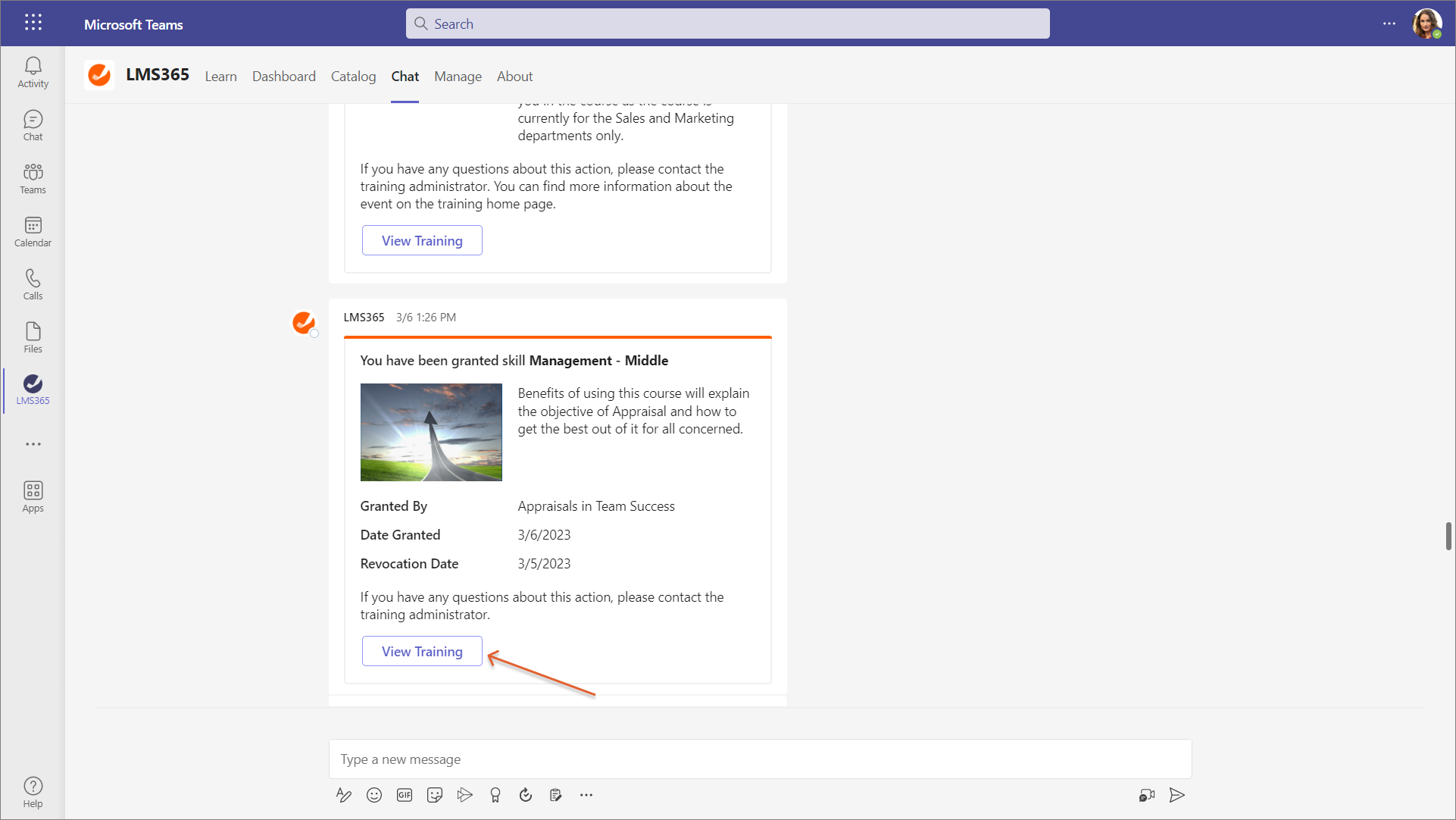 Access training via the Chat tab in Teams